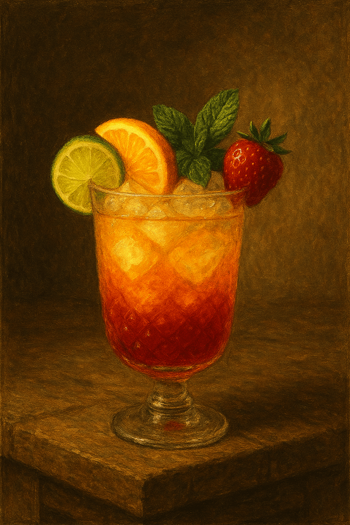 pestato di zucchero di canna, lime e arancia, rum scuro, ginger ale